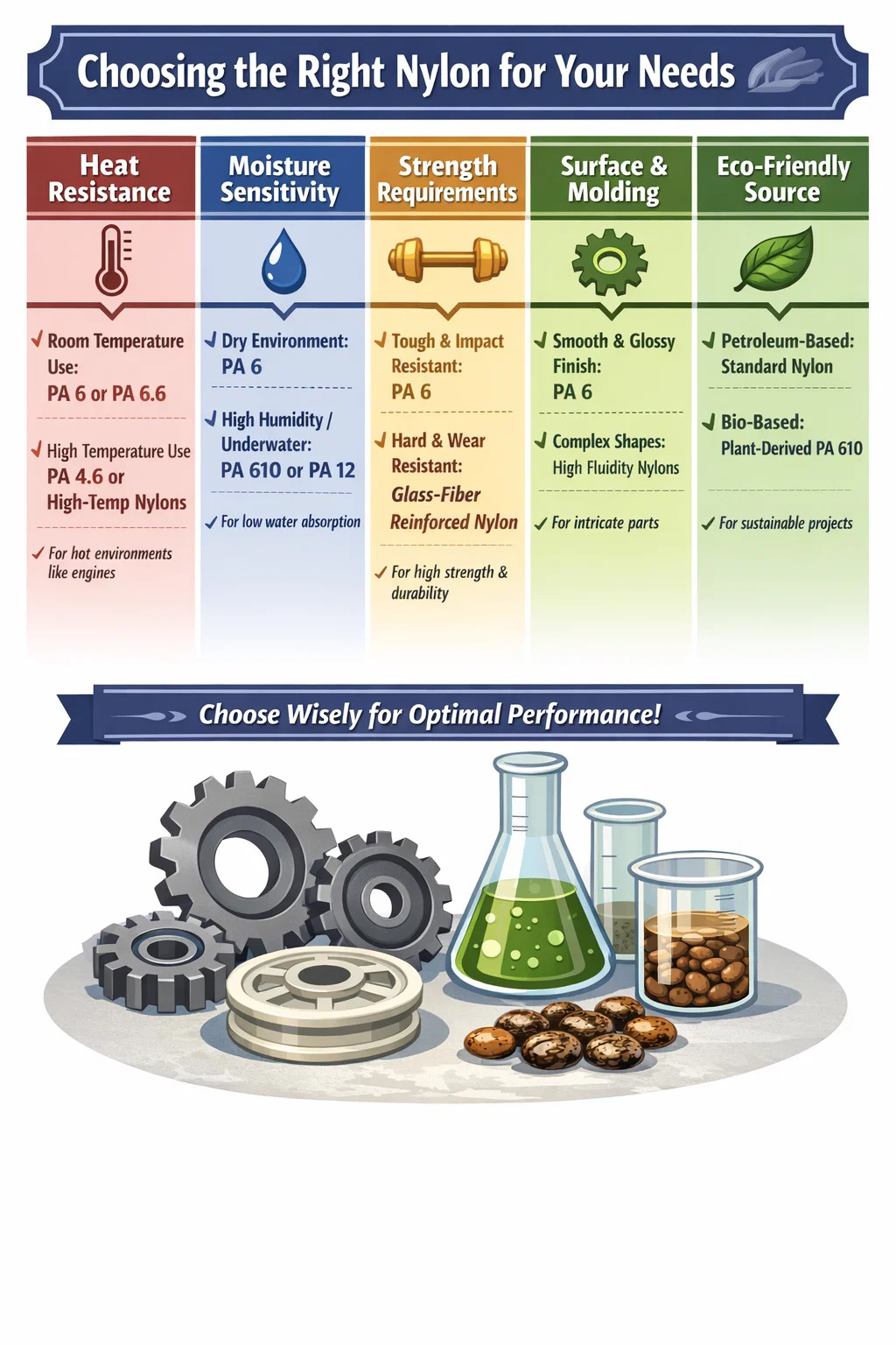 Nahaharap sa iba't ibang uri ng mga materyales na naylon sa merkado, ang pagpili ng tamang "uri" ay kasinghalaga ng pagpili ng tamang sukat at materyal kapag bumibili ng mga damit. Ang pamilyang polyamide ay maraming miyembro, bawat isa ay may sariling katangian. Upang piliin ang pinaka-angkop, maaari mong isaalang-alang ang mga sumusunod na praktikal na aspeto:
