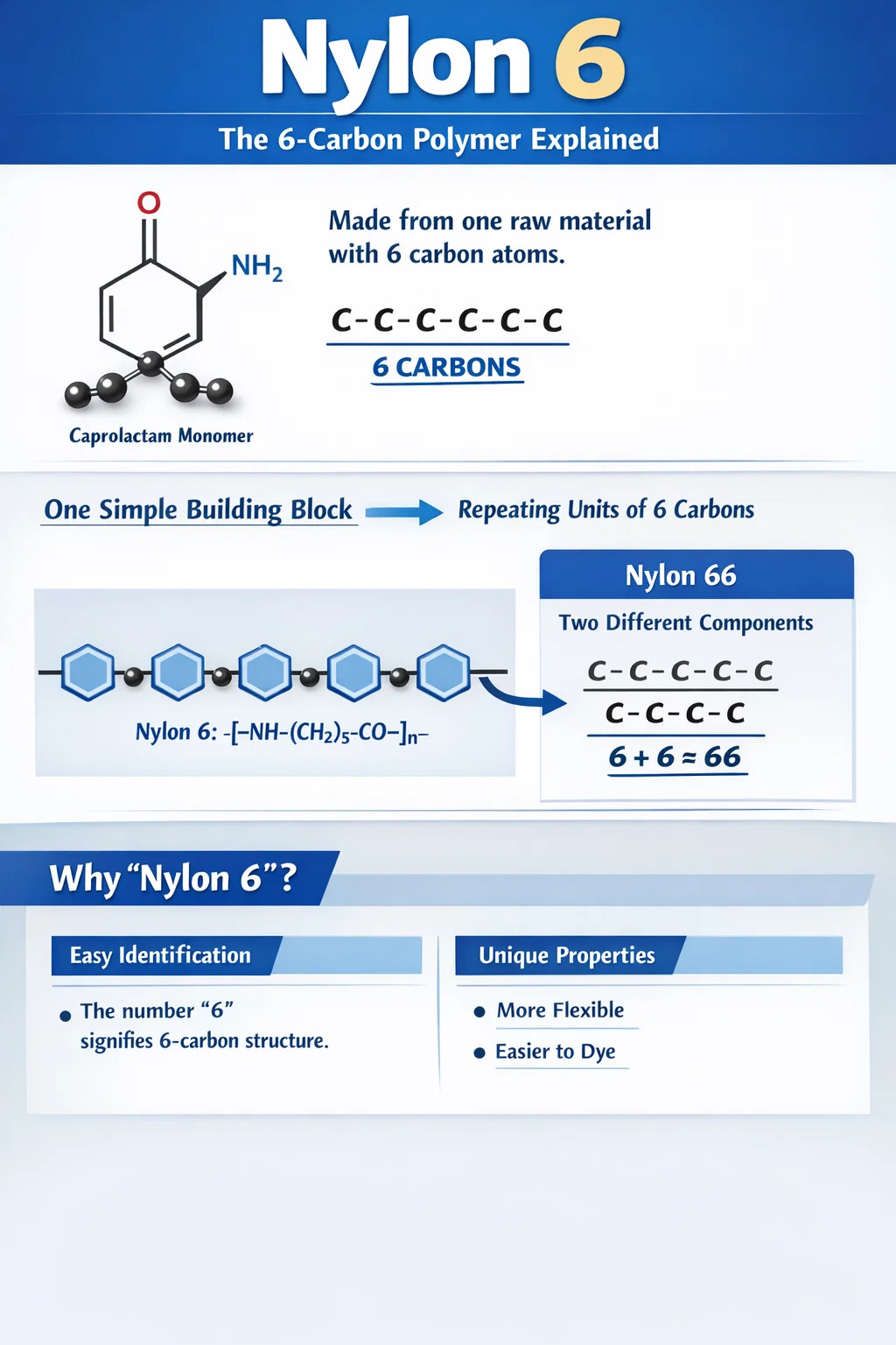 Naming logic: Because only these 6 carbon atoms are involved in the construction of the entire long chain, for convenience and ease of memorization, scientists and manufacturers simply called it "Nylon 6."